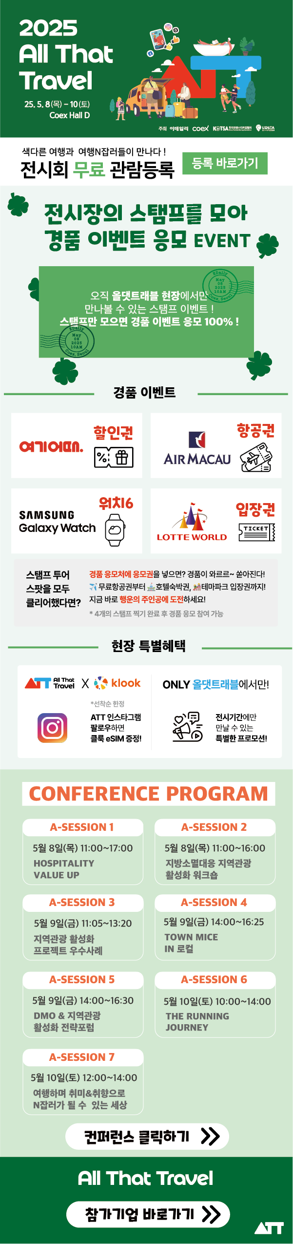 여행은 일상이 되고, 추억은 기록이 됩니다. 2025년, 여러분의 특별한 순간을 올댓트래블과 함께 만들어보세요!