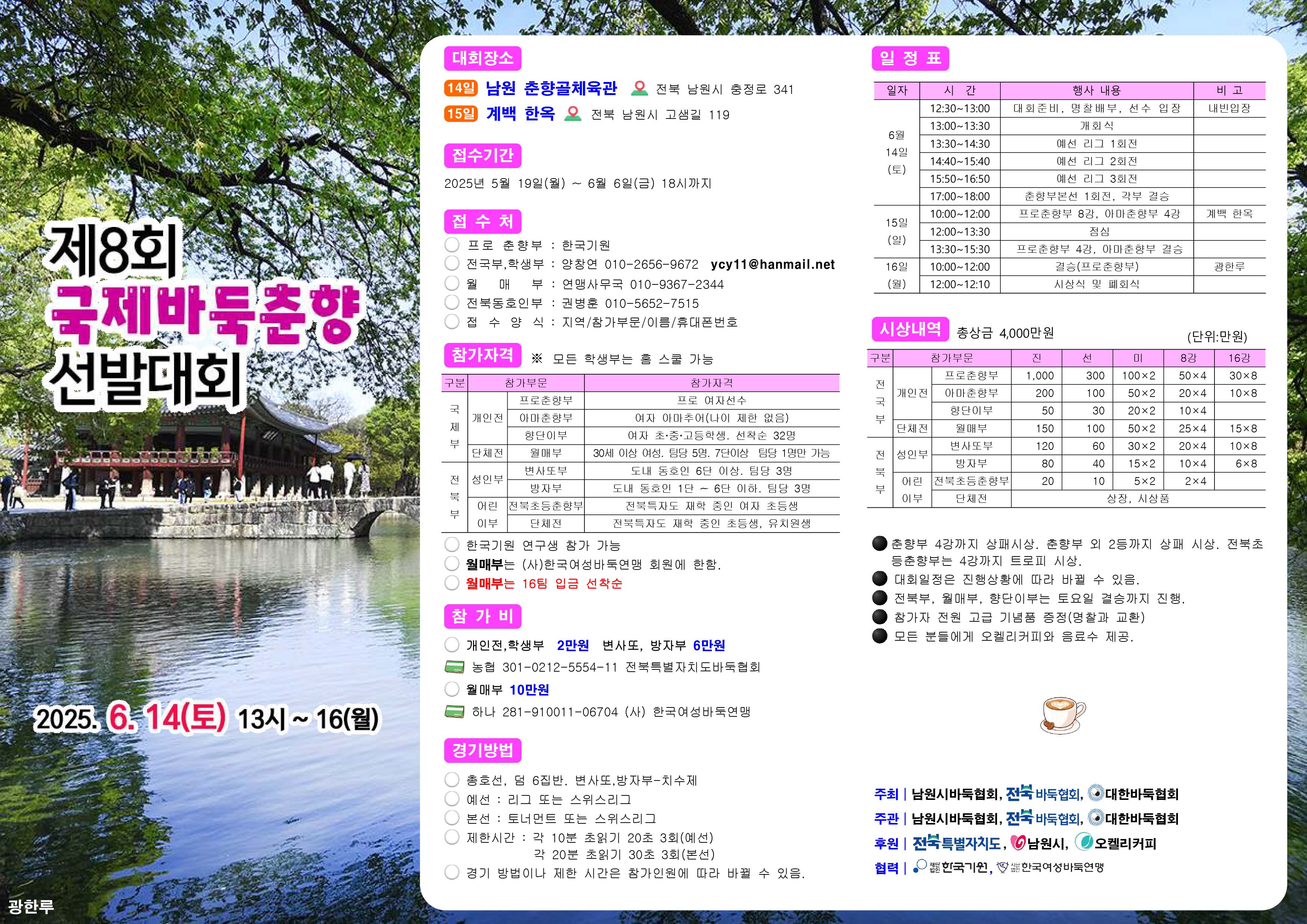 | 주최 | 남원시 / 전라북도바둑협회 / 대한바둑협회 |