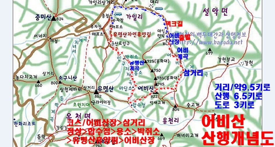 [경기도 가평의 어비계곡을 거쳐 어비산(828m) 정상까지 오르는 원점회귀 등산 코스]