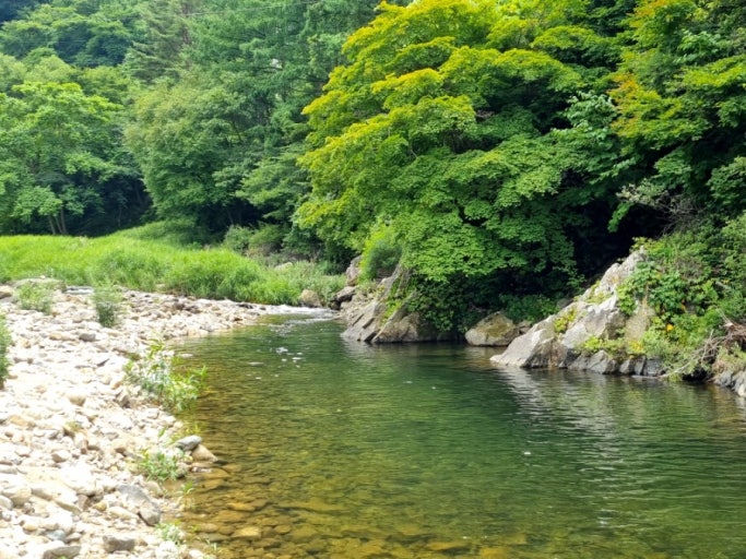 - 소백산맥의 지류에서 흐르는 1급수 청정 계곡물