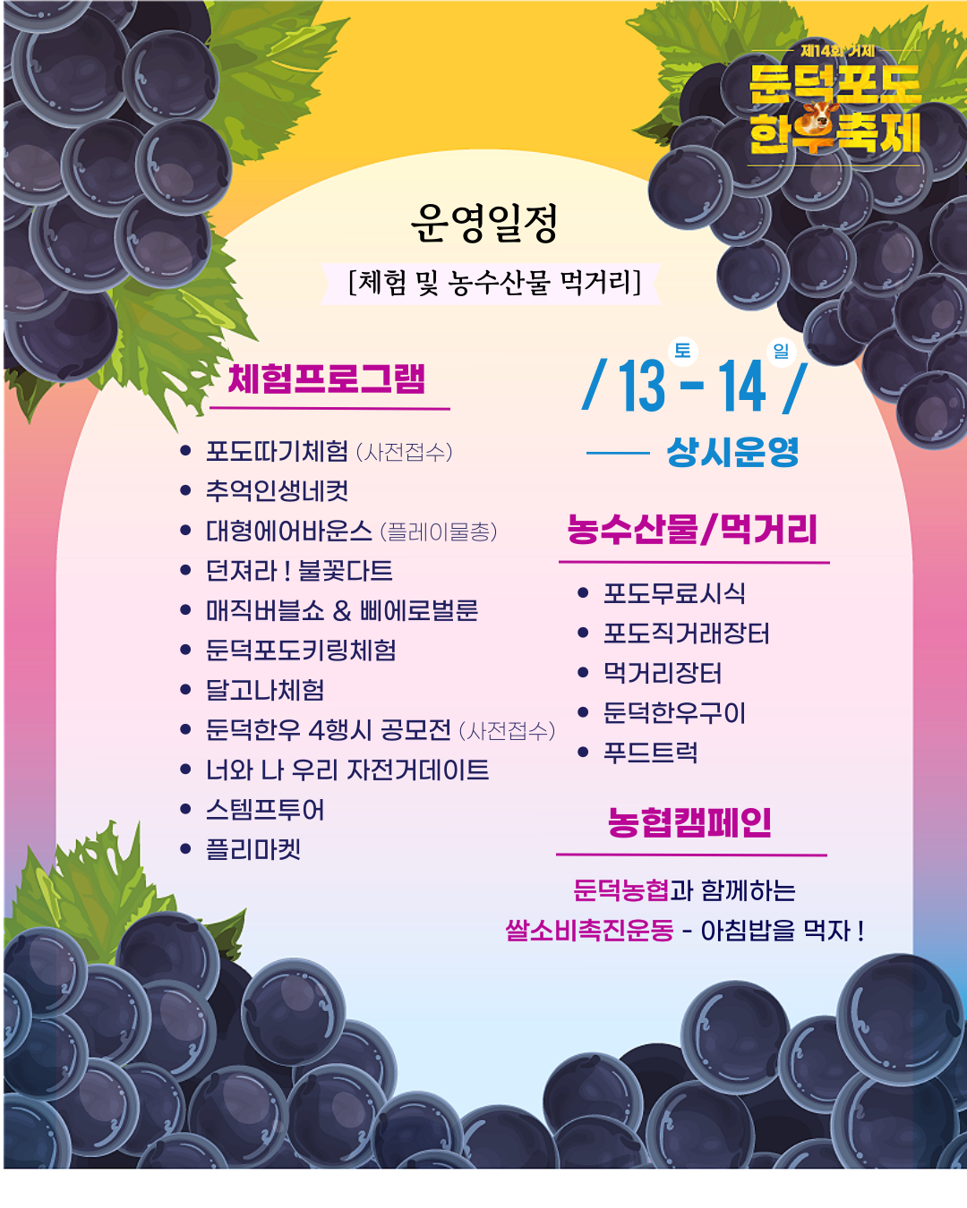 - 주최: 둔덕포도작목반, 지역 축산농가, 거제시