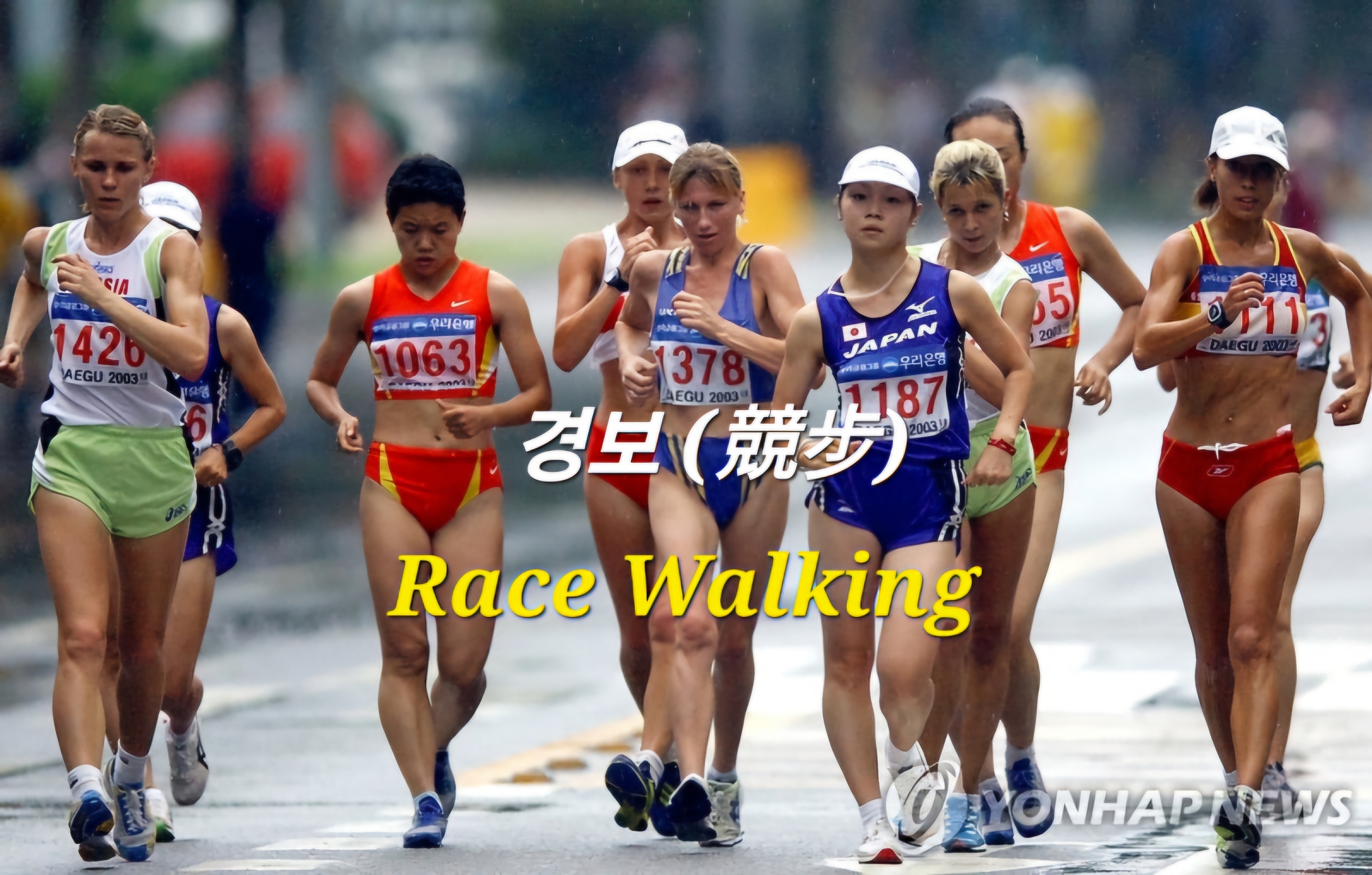 | Race Walking (경보) | 한 발이 항상 지면에 닿고, 앞다리 무릎을 펴야 하는 규정을 지켜 진행하는 육상 경기. |