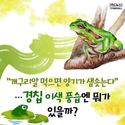 "경칩에 개구리가 뛰어나오면 농사가 잘된다." → 개구리가 일찍 나오면 풍년이 들 징조.