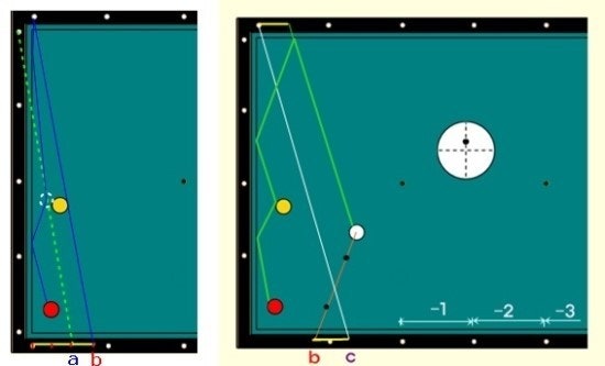 - 더블레일(Double Rail): 연속 두 개의 레일(쿠션)을 빠르게 맞고 방향을 전환하는 샷.