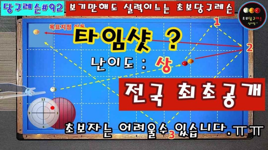타임샷(Time Shot) 은 고수들이 경기 흐름을 바꾸거나 관중을 매료시키는 데 자주 사용하는 고급 기술입니다. 하지만 성공률을 높이려면 충분한 연습과, 공의 물리학(Physics)에 대한 이해가 필수입니다. 결국, “시간을 내 편으로 만드는 샷”이라 할 수 있습니다.