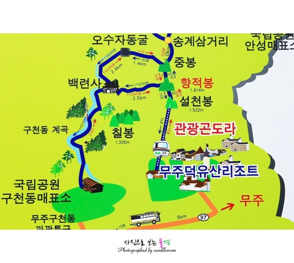 - 장거리 산행 연계: 만약 진정한 중/상급자 코스를 원한다면, 구천동 탐방지원센터에서 백련사를 거쳐 향적봉으로 오르는 코스(약 8.5km, 4~5시간 소요)를 선택하여 체력 단련을 겸할 수도 있습니다.