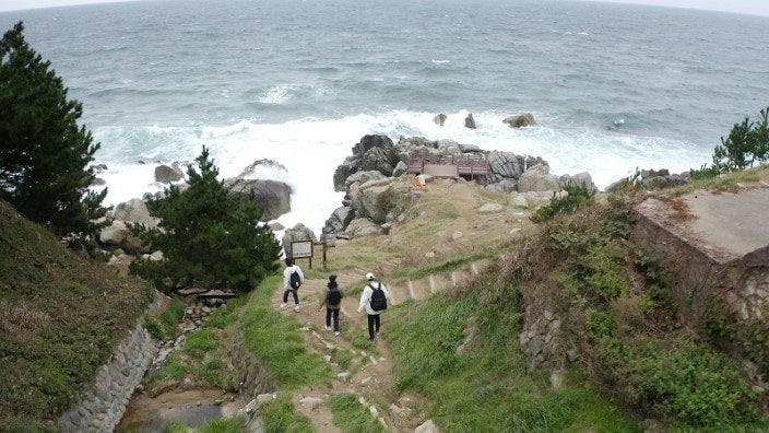 파도가 바위에 부딪히는 소리, 절벽 아래로 내려다보이는 바다는 걷는 리듬을 자연스럽게 만들어줍니다.
