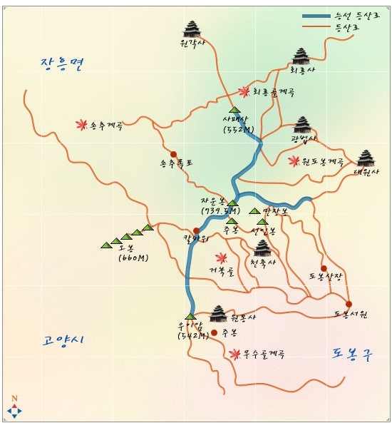 - 코스 : 무수골 입구 → 계곡 산책로 → 상류 숲길 → 도봉산 자락 → 무수골 복귀