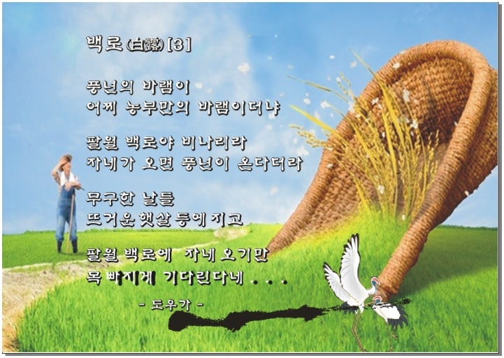 - 백로 전후에 부는 바람으로 풍년 또는 흉년을 가늠하던 풍습도 있었습니다.