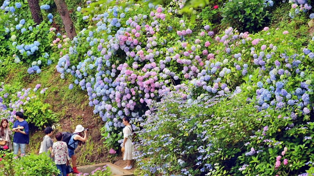 - 5000여 그루 수국 군락 – 태종사 산책로를 따라 펼쳐진 화려한 꽃물결