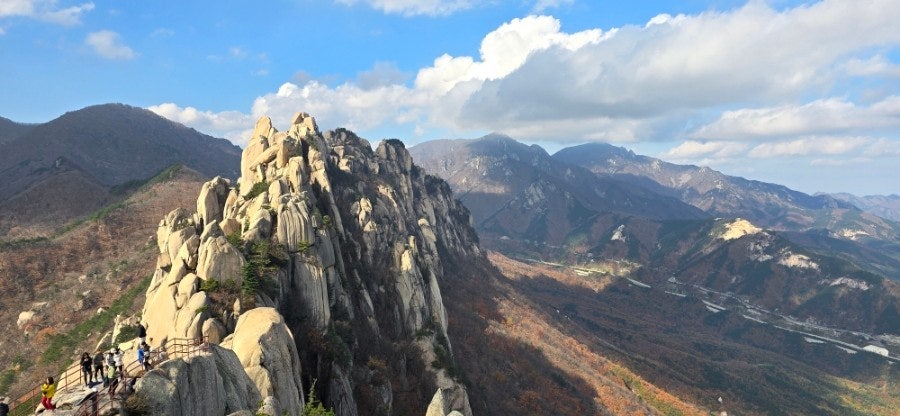 - 설악의 상징, 울산바위: 설악산을 대표하는 거대한 암봉인 울산바위를 가장 가까이에서, 그리고 그 위에 올라 조망할 수 있는 코스입니다. 가을 단풍과 웅장한 바위산의 대비가 매우 인상적입니다.