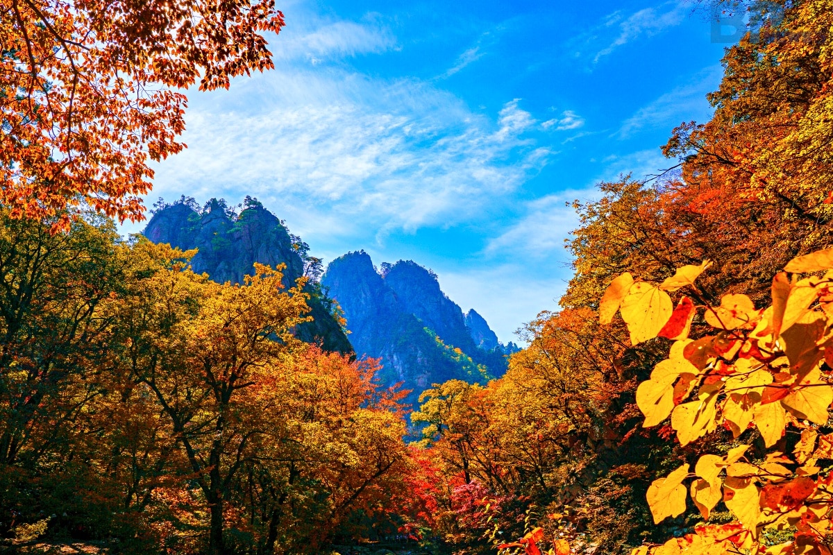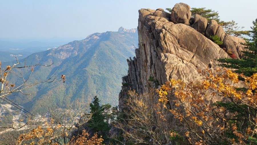 2. 계곡과 암봉의 조화: 깎아지른 듯한 암벽과 맑은 계곡물이 어우러지며, 가을에는 단풍이 계곡을 따라 붉게 물들어 극적인 대비를 이룹니다. 설악산 단풍 중 으뜸으로 꼽히는 명소입니다.