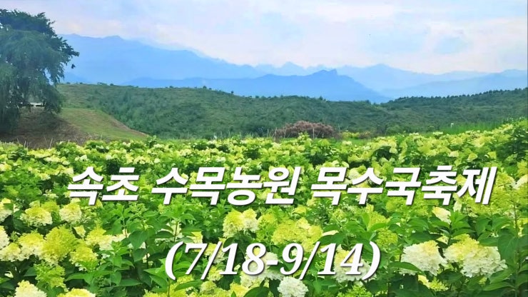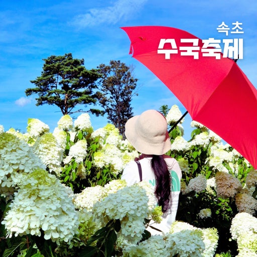 “눈처럼 하얗게 피어난 목수국이 설악과 호수 위에 쏟아진다. 여름 끝자락, 속초에서 만나는 특별한 꽃 정원!”