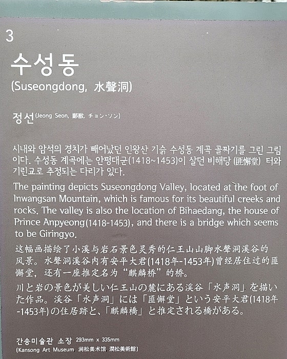 - 국보 제216호인 《인왕제색도》에 등장하는 인왕산과 수성동 일대가