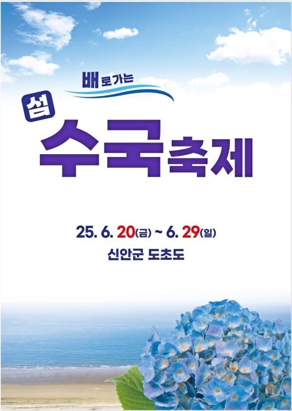 **"도초도 수국축제"**와 **단 하루만 열리는 ‘섬파트, 섬파티!’**가 여러분을 기다립니다.