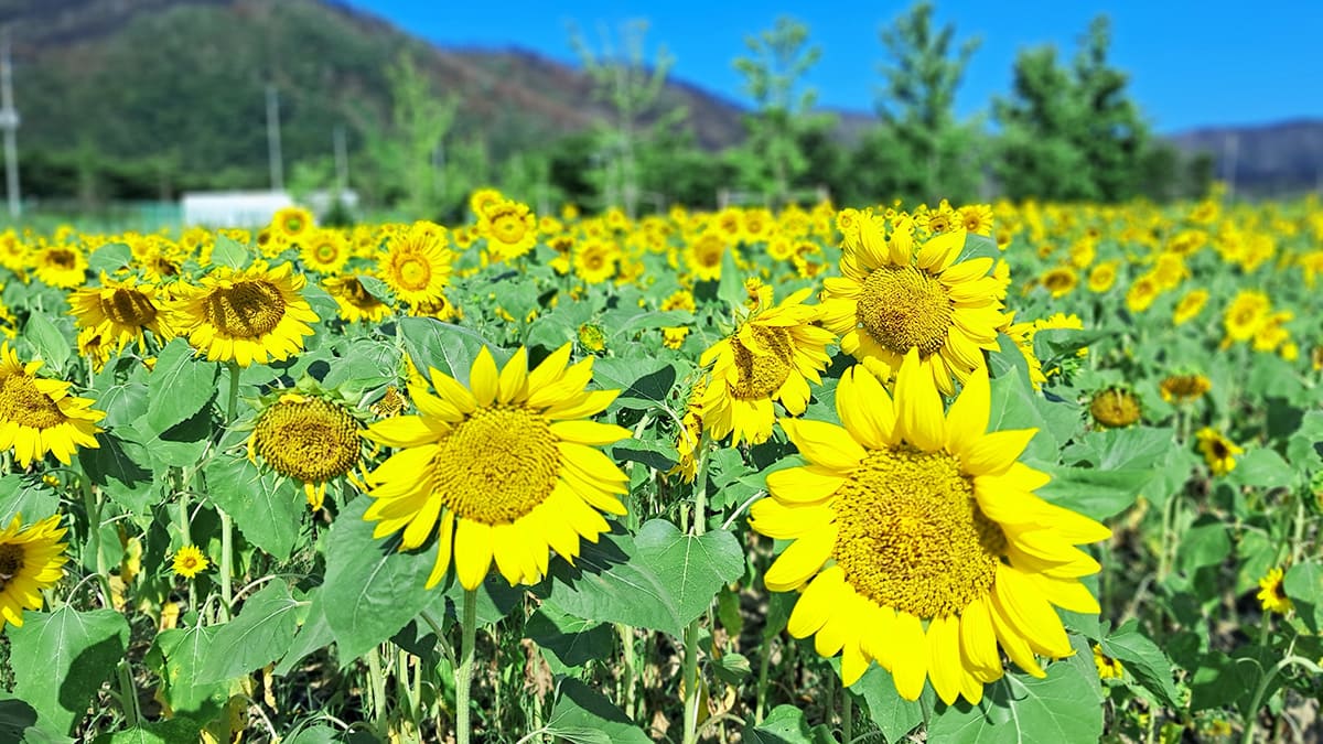 • 축제장 전체를 채우는 약 4만 송이 해바라기가 여름의 정취를 가득 전합니다.