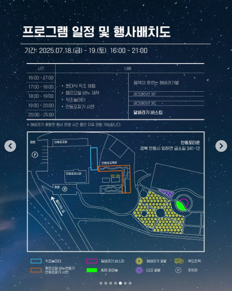 “천 년 전통 안동포와 4만 송이 해바라기가 만드는 별빛 감성—초여름밤 안동포타운에서 행복한 휴식과 추억을 건지세요!”