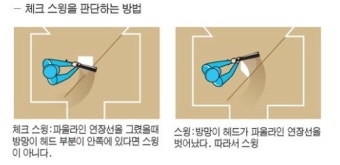 - 판정 기준: 배트 끝이 홈플레이트 앞 기준선을 90° 초과하면 스윙, 이하는 노스윙.
