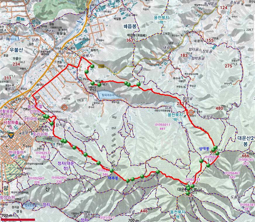 - 산행 전, 대운산 등산 지도를 미리 확인하여 전체적인 경로를 숙지하는 것이 좋습니다.