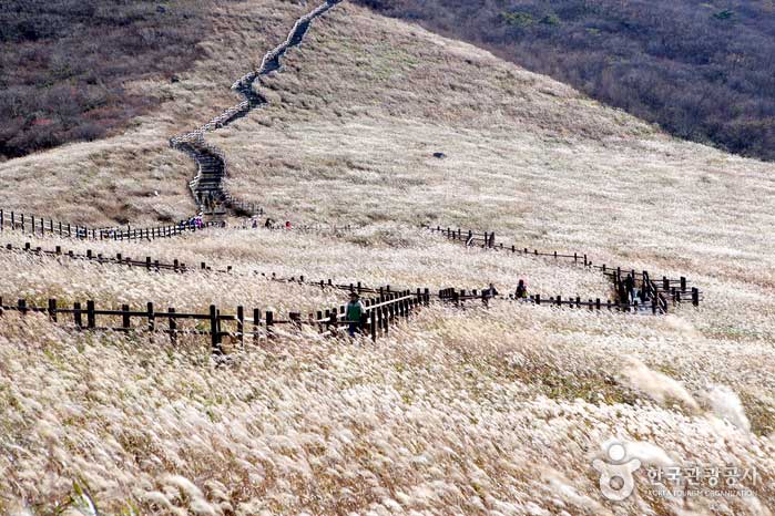 트레킹 코스로 간월재에 오르면, 끝없이 펼쳐진 억새밭이 마치 하늘 위 정원처럼 펼쳐집니다.