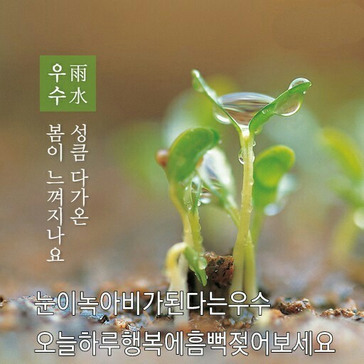 🌿 "우수 비에 새싹이 돋고, 봄이 성큼 다가옵니다. 따뜻한 봄날을 기대하며 활기찬 한 해를 준비하세요!" 🌿