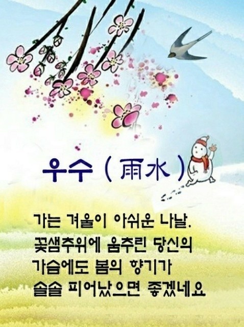 우수는 겨울이 끝나고 봄이 다가오는 신호를 보내는 절기입니다.