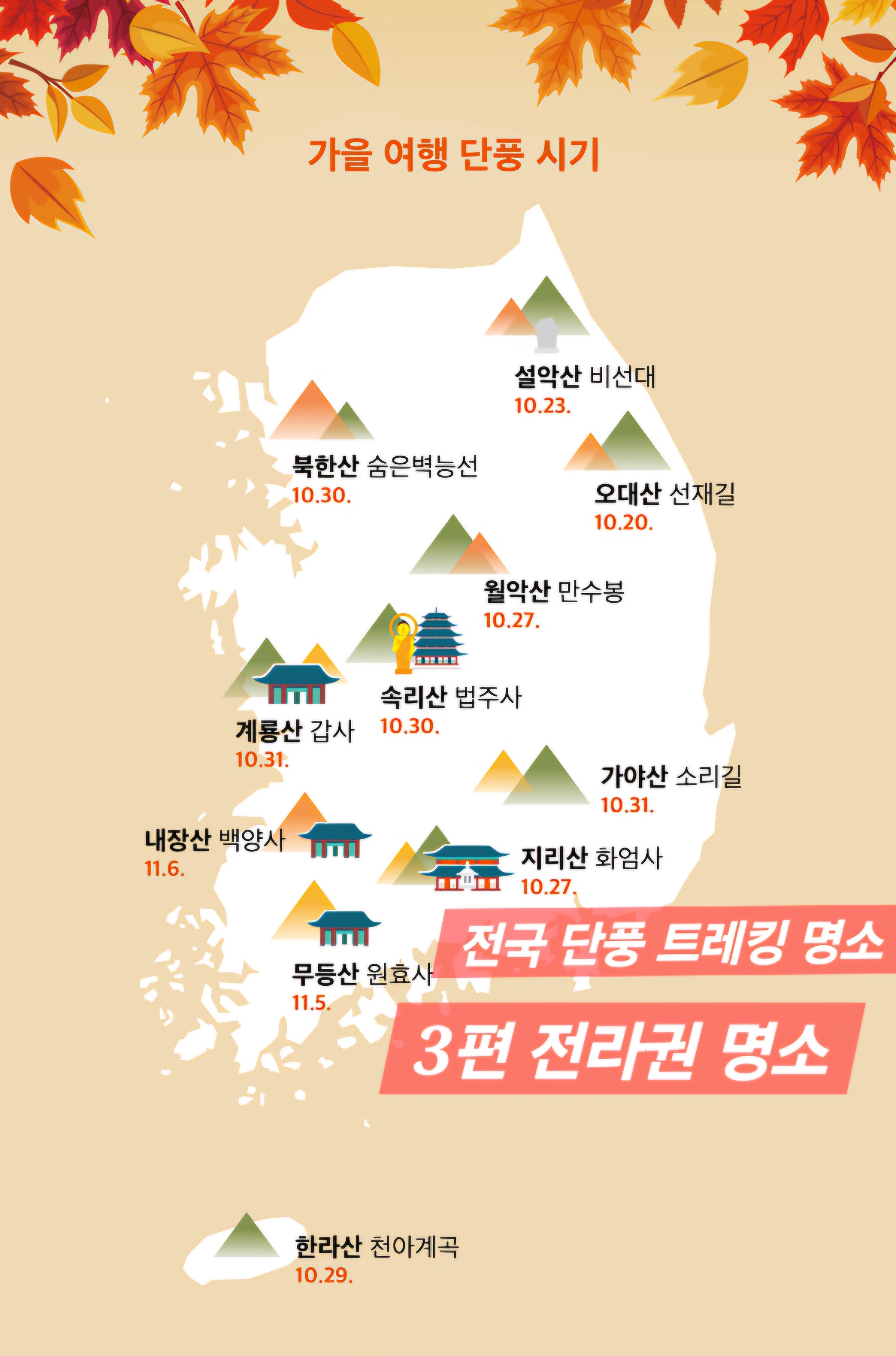 전라권 단풍 트레킹은 '설악산 천불동', '속리산 문장대', '계룡산 갑사' 등과 함께