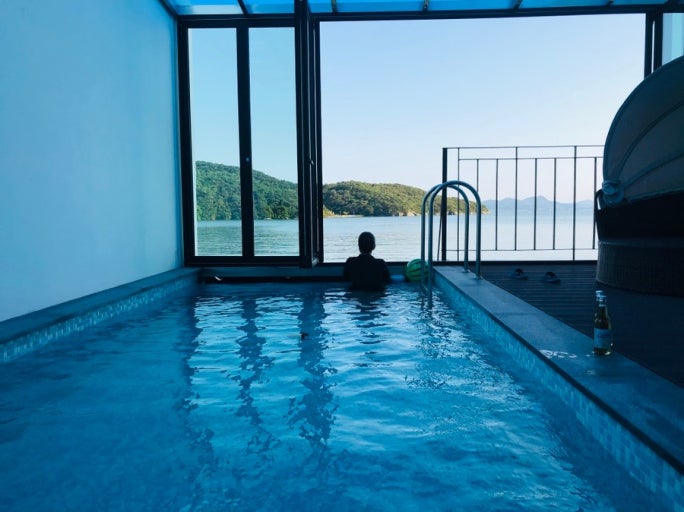 - 노천탕에서 서해 일몰 감상 가능