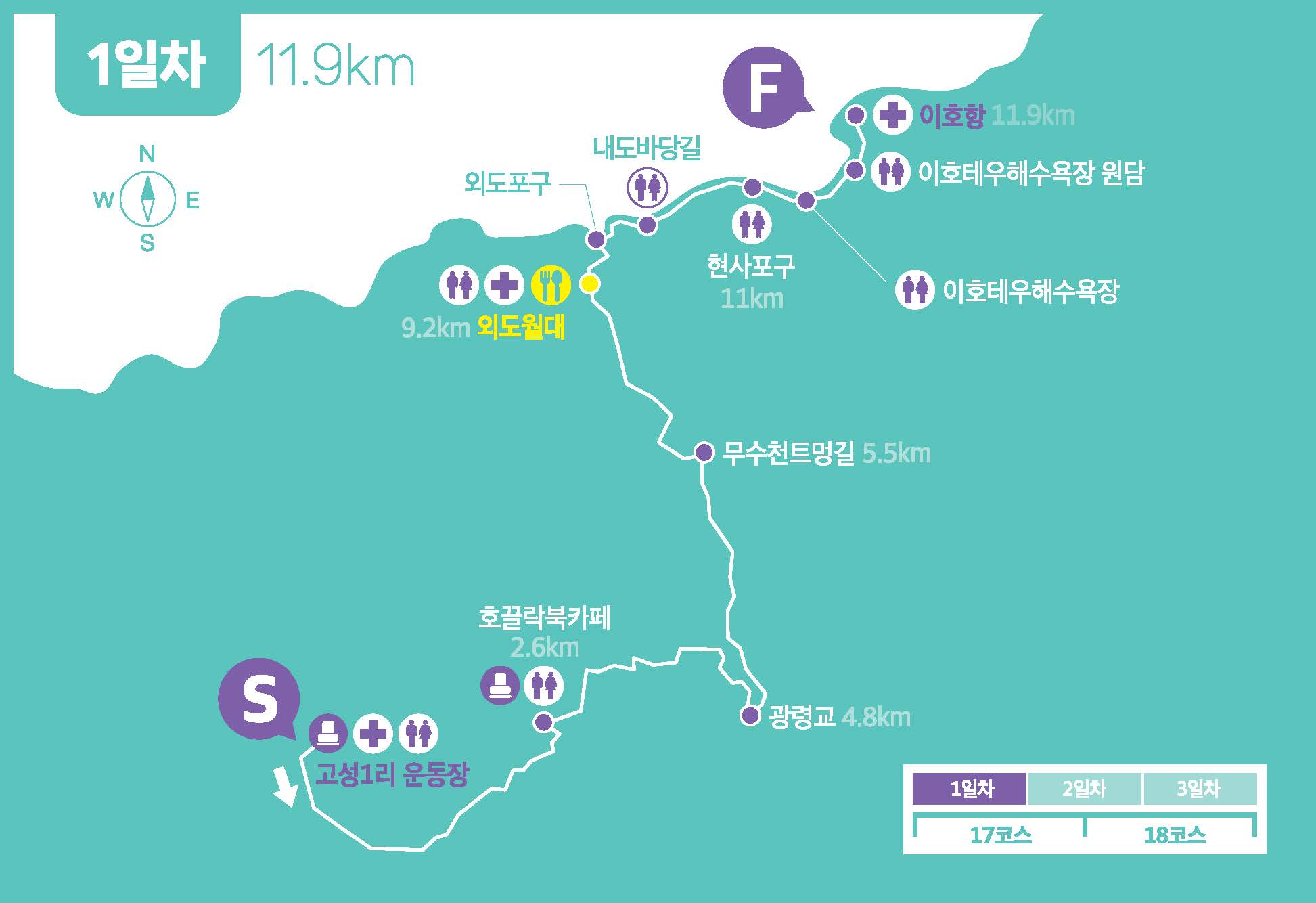 - 1일차(11/6) — 17코스: 고성리종합운동장 → 이호항 (약 11.9km)