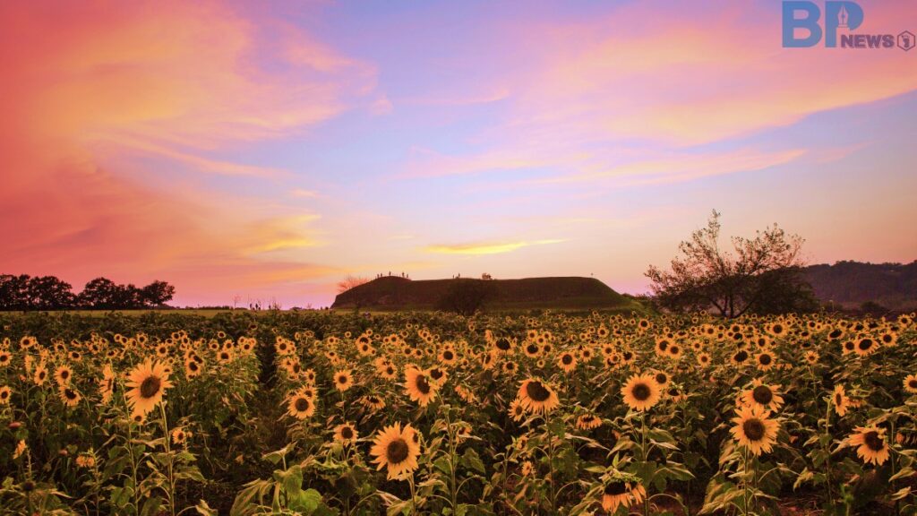 - 아침: 해바라기 군락 사이를 조용히 산책하며 고즈넉한 풍경 감상