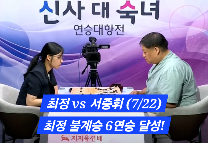 2025년 제19기 지지옥션배의 최대 화제는 이창호 9단의 7연승이었지만,숙녀팀의 최정 9단이 이를 완전히 뒤집으며 6연승을 이어가는 대역전극이 벌어지고 있습니다.이 흐름은 대회 최대의 드라마