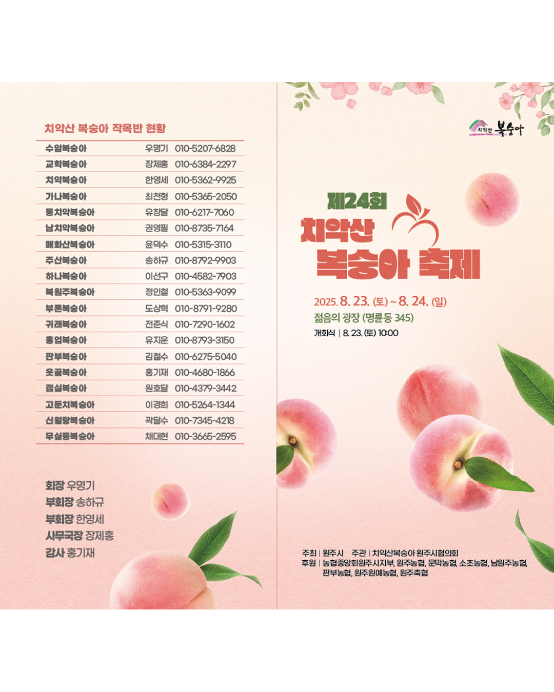 이번에는  **2025 제24회 치악산 복숭아축제 (8월 23일~24일, 원주 젊음의 광장)**에 대해 소개해드리겠습니다.