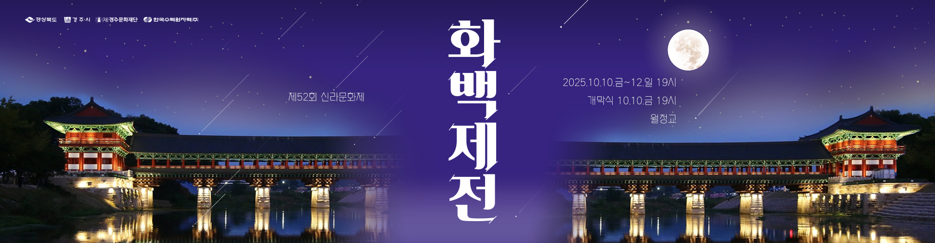| 개막 & 메인 공연 | 화백제전 | 월정교 수상 특설무대에서 개막: 드론·미디어파사드·불꽃을 활용한 무대 연출로 박혁거세·석탈해·김알지 탄생 설화 등 신라 설화 재현 |