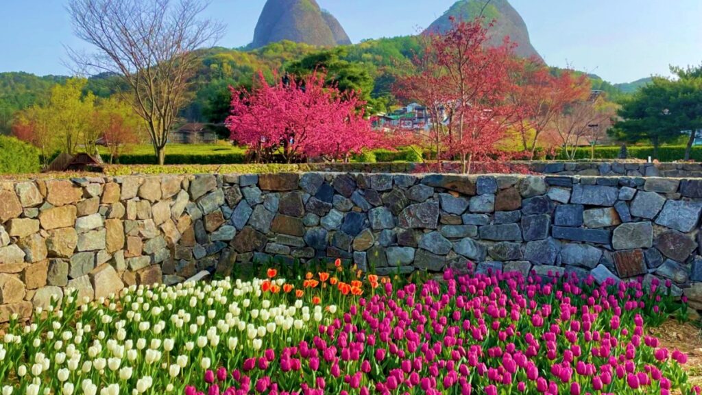 진안 마이정원은 단순한 식물원도, 조경공원도 아닙니다. 마이산 자락의 자연을 최대한 해치지 않으며, 미로처럼 얽힌 산책로 안에 사계절 꽃과 테마 공간들을 조화롭게 담은, 민간형 복합 정원입니다. 특히나 봄이면 튤립과 수선화가 피고, 여름이면 수국이 만개하며, 가을에는 핑크뮬리와 억새가 넘실거리는 모습이 사람들의 발길을 이끕니다.