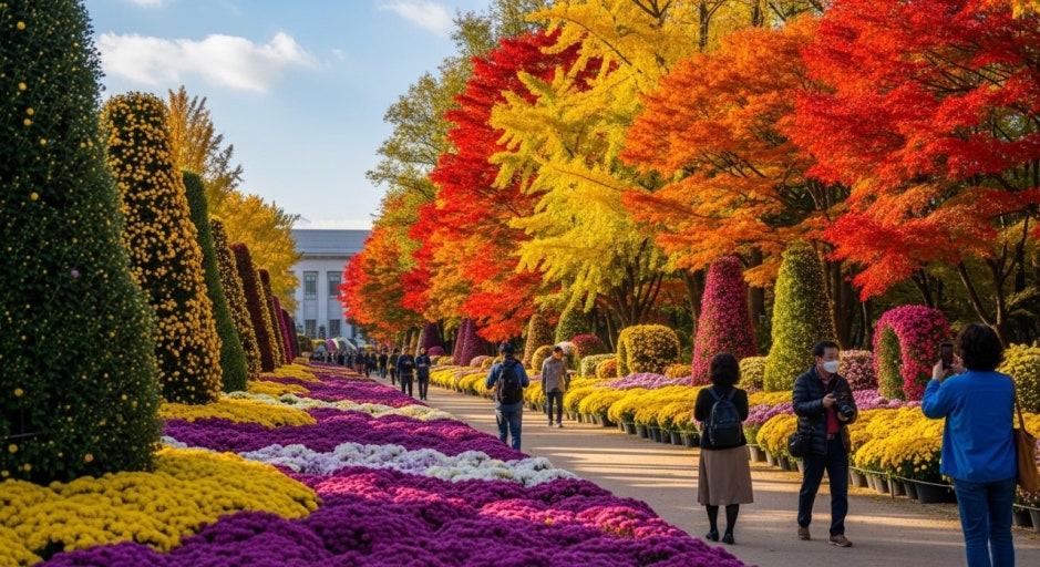 🌼 축제의 하이라이트: 단풍과 국화의 만남