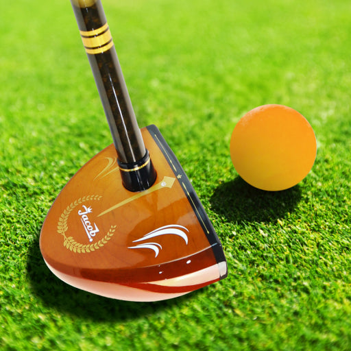 - 가장 중요한 준비물입니다. 일반 골프채와는 다르게, 파크골프는 단 하나의 클럽으로 모든 샷을 구사합니다. 나무로 만들어진 '헤드' 부분이 넓적하고, 길이도 일반 골프채보다 짧아 다루기 쉽습니다.