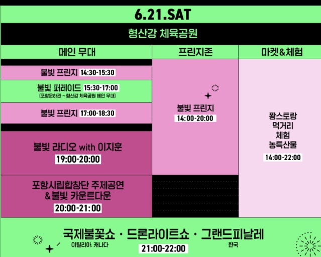 | ⏰ 불꽃쇼 시간 | 6/21(토) 저녁 8:00~ 약 40분 |