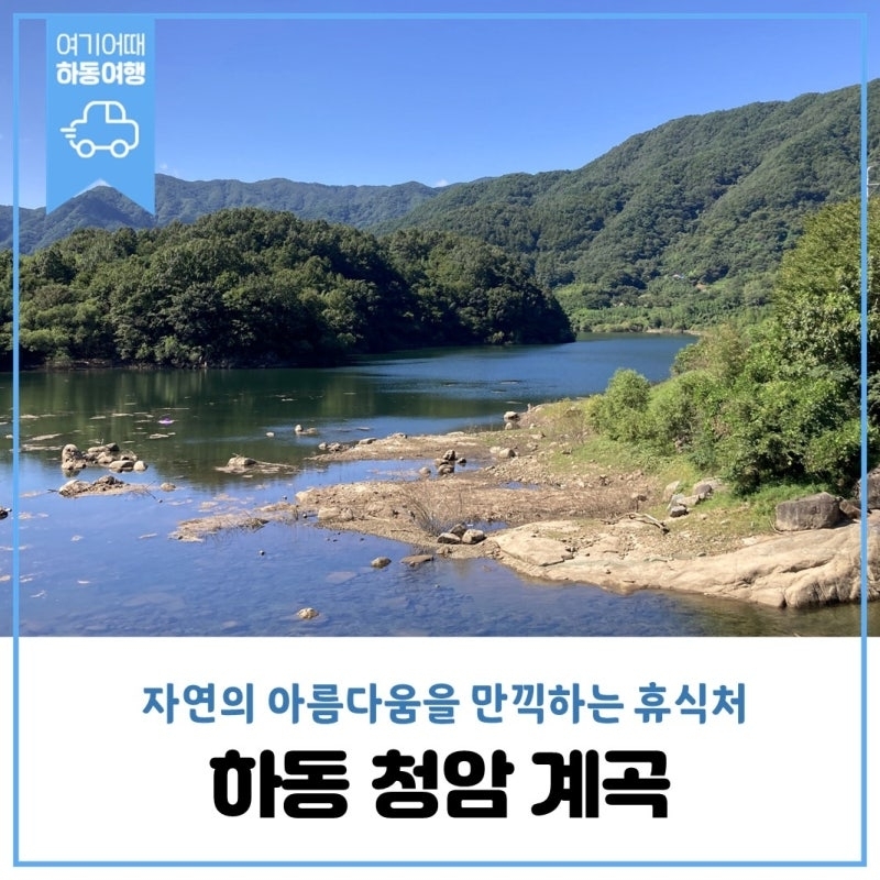 수량이 풍부하고 물이 맑아 여름철 피서지로 각광받으며, 가을에는 단풍이 아름답게 물들어 또 다른 매력을 뽐냅니다. 아직 인파가 덜 몰리는 편이라 비교적 한적하게 자연을 즐길 수 있다는 점도 청암계곡만의 장점입니다.
