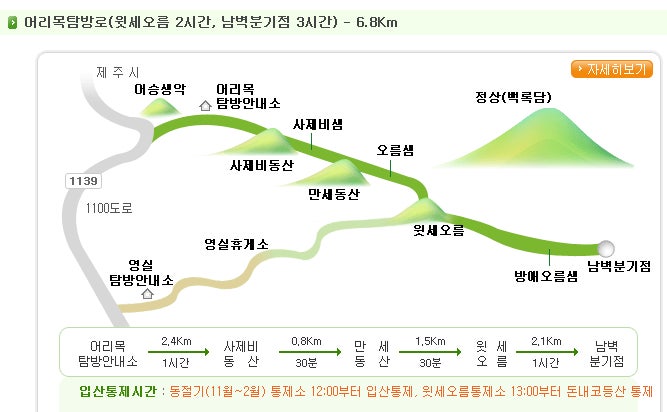 • 입산 가능 시간: 동절기(11월~2월)에는 어리목 코스 입구는 오전 9시까지입니다.