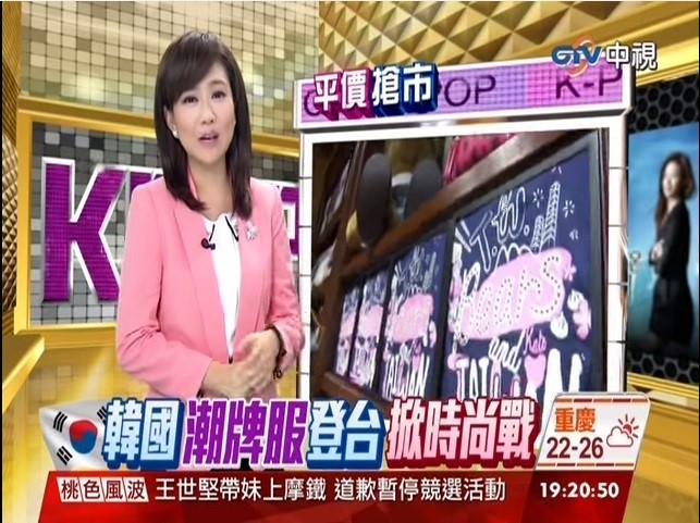 수도 타이베이 쇼핑 구역은 한국에서 영감을 받아 서울의 쇼핑 지역과 유사하게 형성되어 패션에 민감한 젊은이들을 대상으로 하며, 한국 아이돌에게서 스타일 영감을 받습니다.
