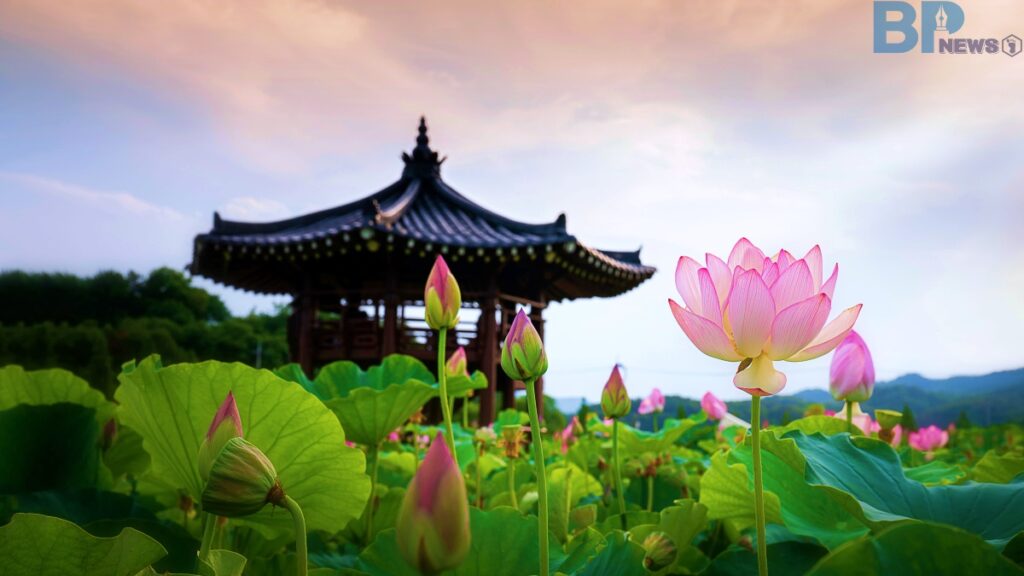 “700년의 잠에서 깨어난 고려 연꽃, 아라홍련—함안 연꽃테마파크에서 역사의 숨결과 여름의 감성을 만끽하세요.”