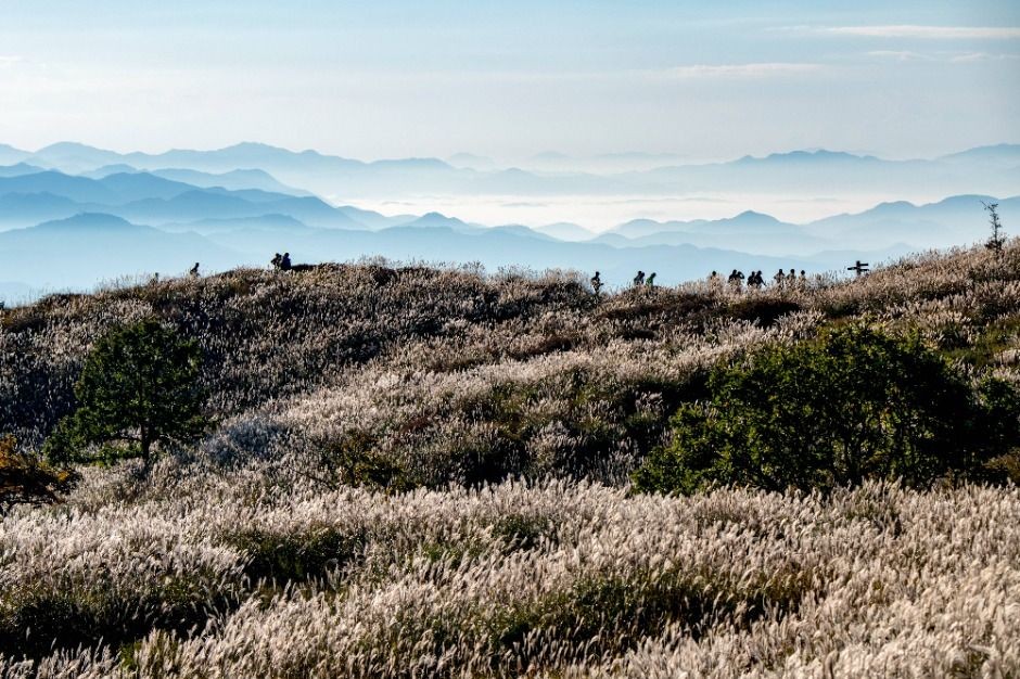 능선을 따라 끝없이 펼쳐진 억새의 물결,