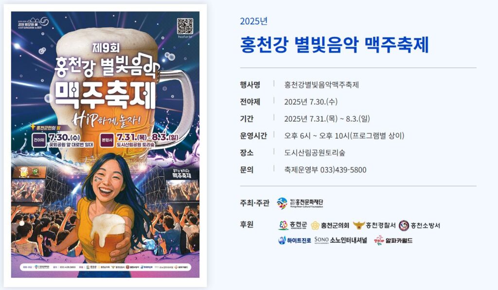 여름 밤의 별빛 아래, 시원한 맥주와 음악, 다채로운 이벤트가 함께하는 제9회 홍천강 별빛 음악 맥주축제 2025를 소개합니다!