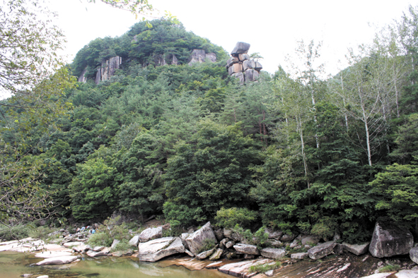 - 제7곡 와룡암(臥龍巖): 계곡물에 바짝 엎드려 꿈틀거리는 용의 모습과 같다고 하여 이름 붙여진 바위입니다.