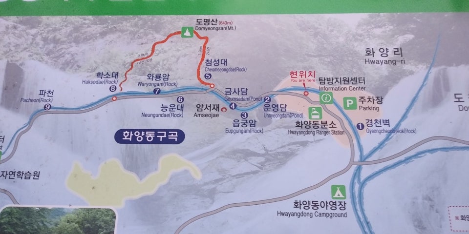 - 명칭 유래: '화양'은 ‘빛나는 양지바른 골짜기’라는 뜻