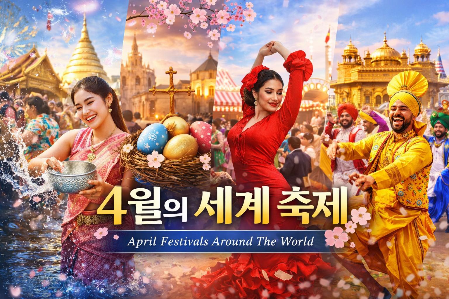 4월은 세계에서 가장 다채로운 축제가 열리는 달입니다. 물, 음악, 역사, 꽃, 신앙, 그리고 수확. 이 모든 이야기가 하나의 계절 안에서 펼쳐집니다.