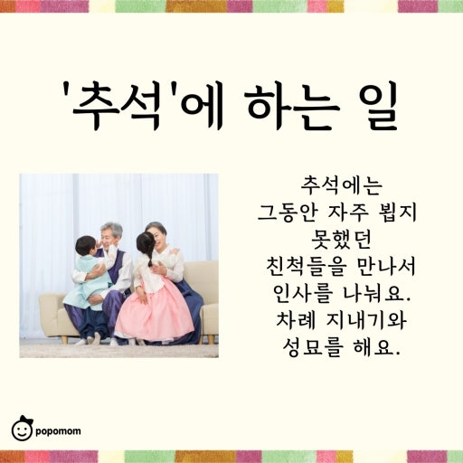 - 오늘날에는 온 가족이 모여 조상과 자연의 은혜에 감사하며 정을 나누는 최대 명절로 자리하고 있습니다.