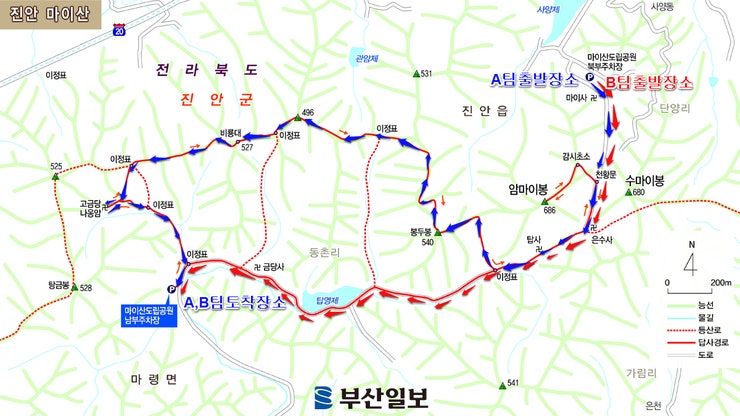 마이산은 크게 두 봉우리(암마이봉, 숫마이봉)를 중심으로 **남부(탑사)와 북부(금당사)**를 잇는 코스, 그리고 주변 봉우리인 봉두봉을 포함하는 종주 코스가 있습니다.
