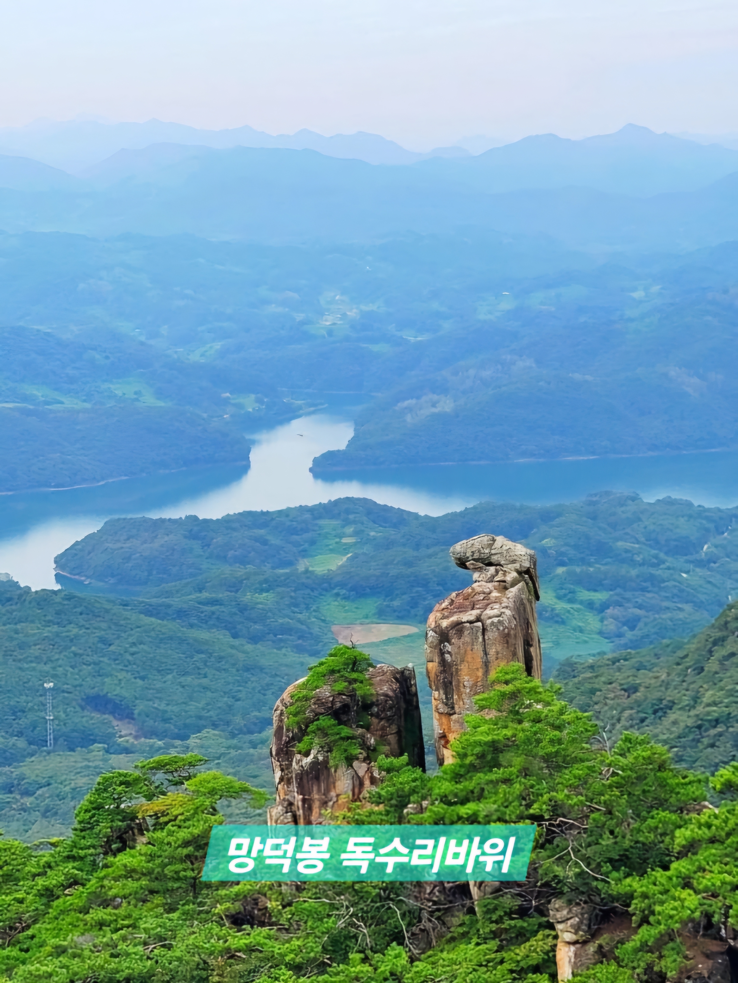 - 금수산 정상 및 망덕봉 삼거리: 금수산 정상(데크)에 서면 주변의 산악 지대와 함께 **충주호(청풍호)**가 한눈에 들어오는 환상적인 조망을 자랑합니다. 정상과 망덕봉을 잇는 능선길 일부와 망덕봉 삼거리 근처에서는 키가 작은 억새와 풀들이 어우러져 가을 분위기를 더합니다. 특히 망덕봉 인근에서는 명물인 독수리바위와 청풍호, 옥순봉, 제비봉의 비경을 함께 조망할 수 있습니다.