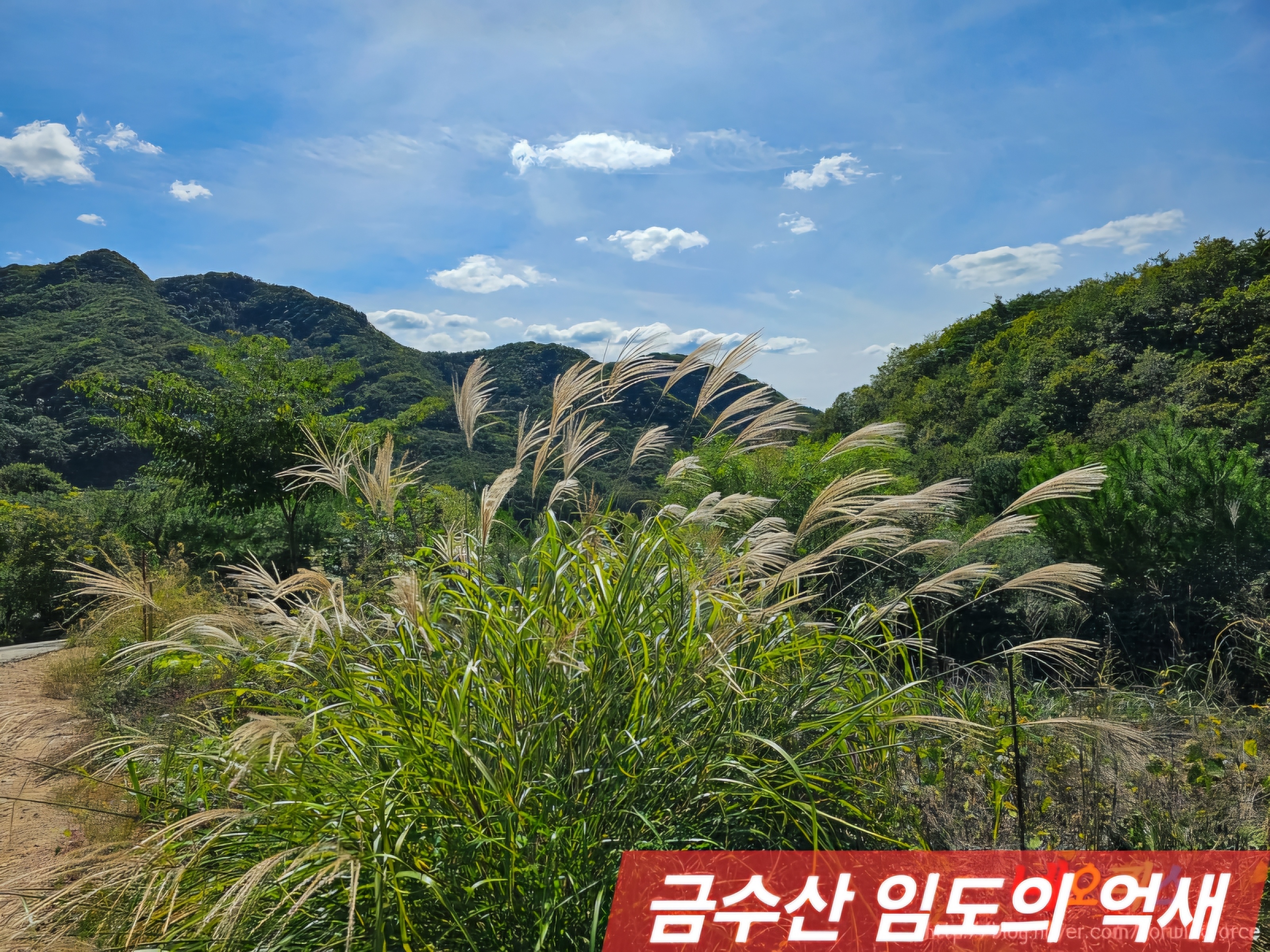이 산의 이름 ‘금수(金秀)’는 ‘비단처럼 아름답다’는 뜻으로, 가을이면 그 이름 그대로 산 전체가 붉은 단풍과 은빛 억새로 물듭니다.